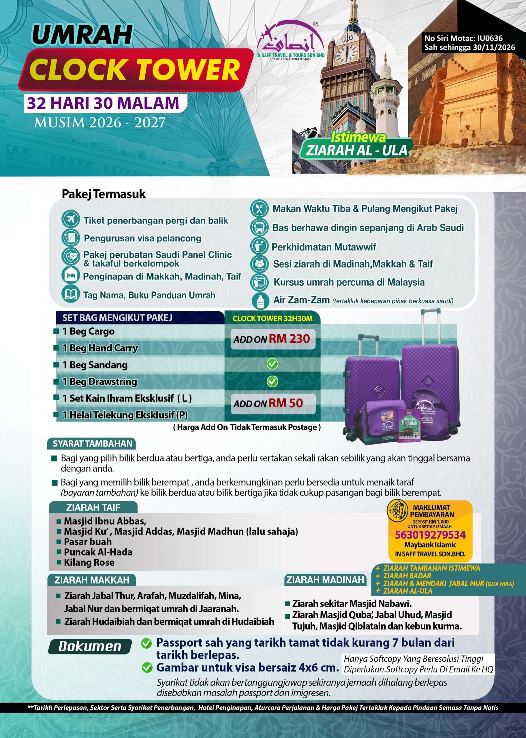 π Pakej Umrah 32 Hari 30 Malam Clock Tower: Ibadah Eksklusif dengan Penginapan Premium! π