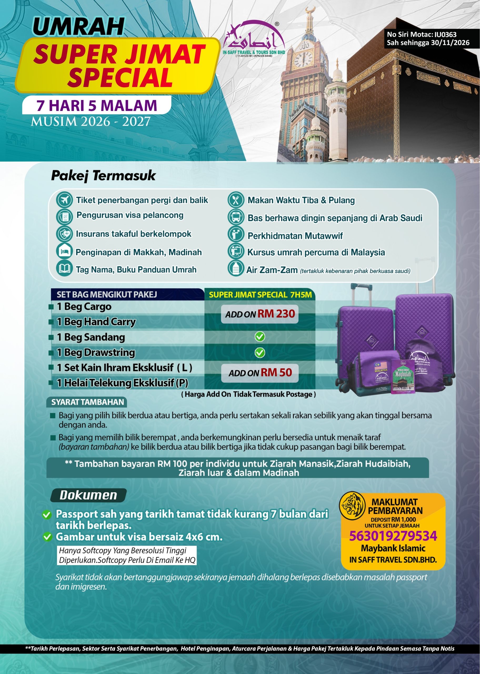 ✅ Mutawwif berpengalaman – Bimbingan dan penerangan sepanjang perjalanan bagi memastikan ibadah anda berjalan lancar.