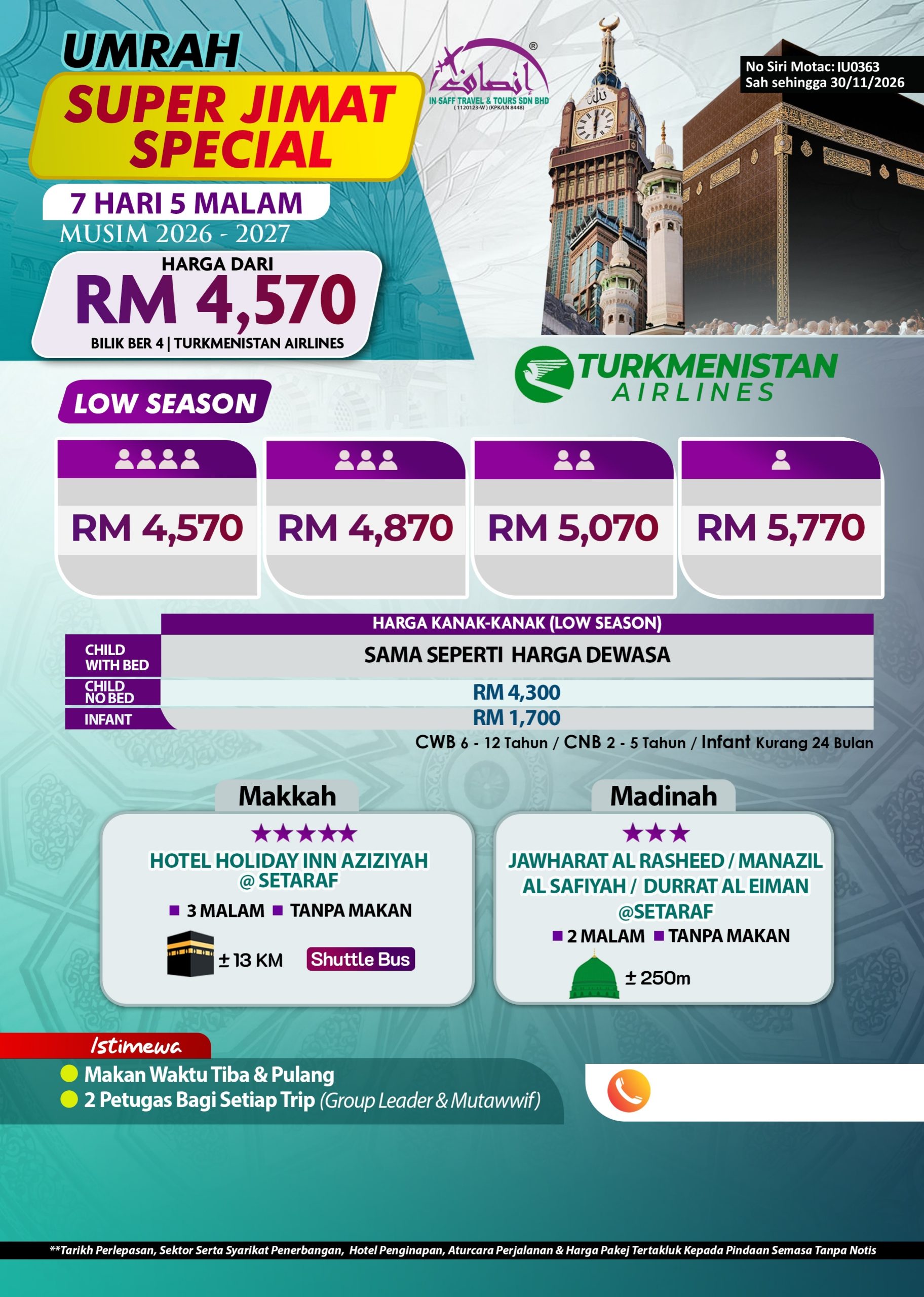 ** Tarikh Perlepasan, Sektor Serta Syarikat Penerbangan, Hotel Penginapan, Aturcara Perjalanan & Harga Pakej Tertakluk Kepada Pindaan Semasa Tanpa Notis